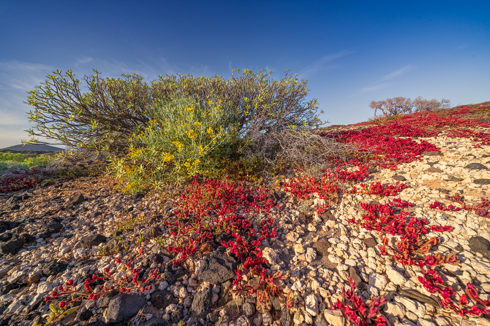 I’m a regular visitor of South-Tenerife for many years but this was the first time I witnessed such a burst of red. So I turned my camera away from the wild seashores, which I love so much, to photograph this beautiful flora event.