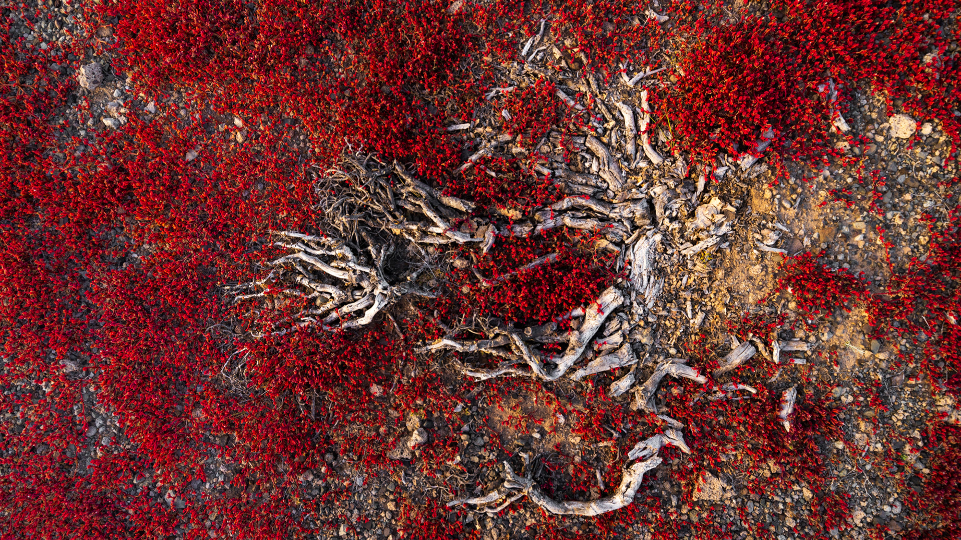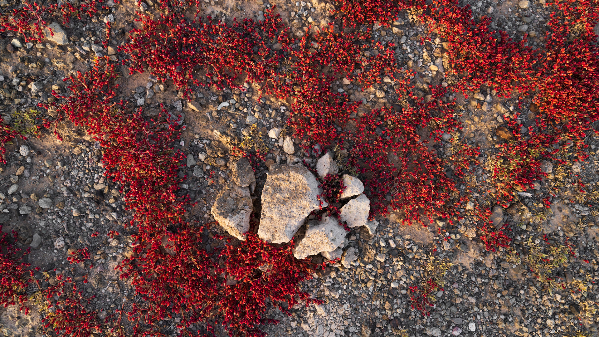 A detail of the plants that are at the origin of the red explosion in the landscape, tiny little leaves of 1 to 2 cm high